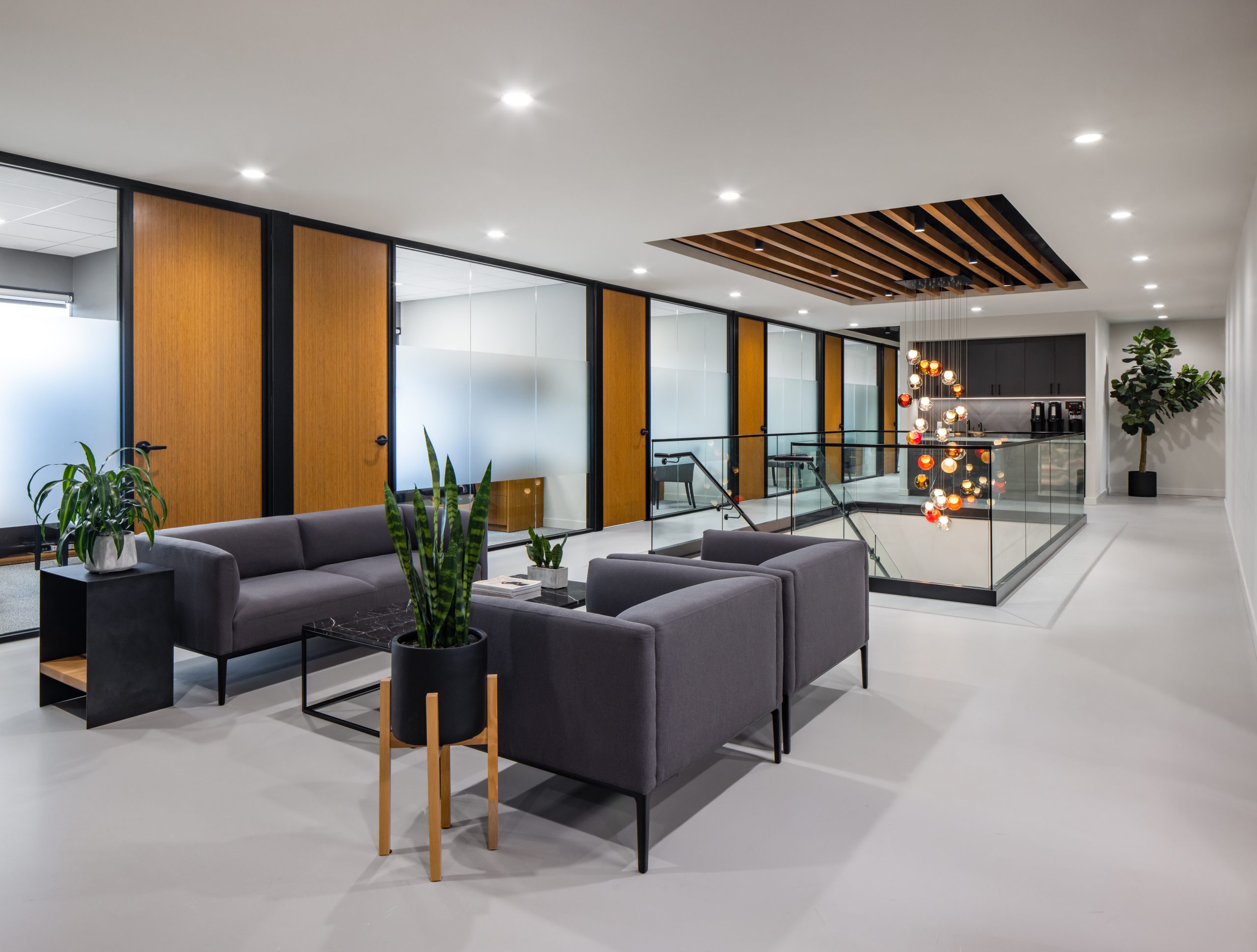 Hall Contractors relocated their offices to the vibrant West 200 building. This beautifully designed facility enabled Hall to consolidate all its divisions under one roof, resulting in more efficient business operations. The space boasts a grand entrance, executive lounge, and rooftop patio with stunning views of the North Shore mountains.