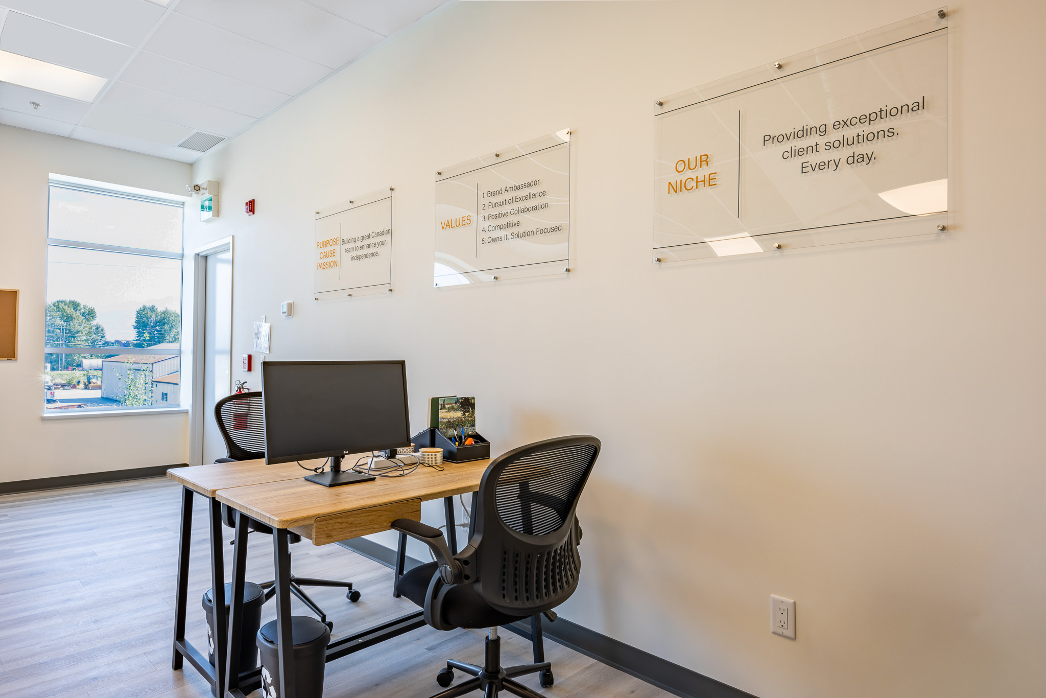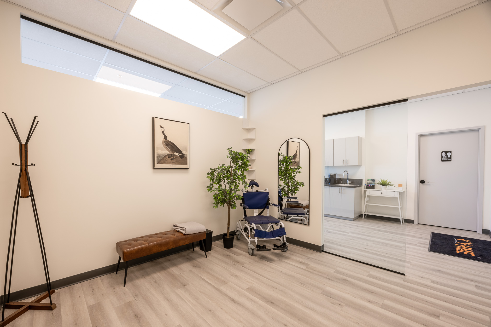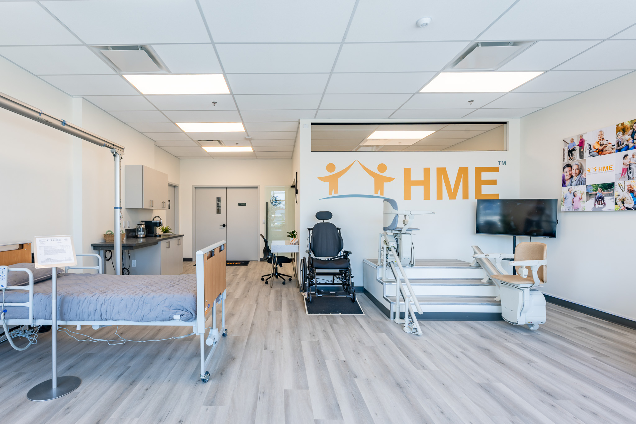HME’s new facility at Riverside Road Business Park supports their mission to enhance accessibility with a two-floor office, functional warehouse, and a medical equipment showroom. Custom features, including adjustable sinks, a wheelchair wash station, and a dedicated clean wash area, demonstrate Orion’s expertise in delivering highly specialized, client-focused spaces.