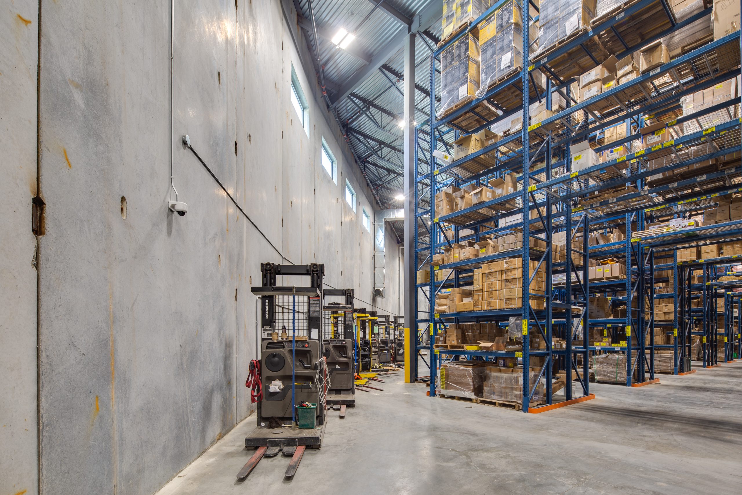 Located on an eight-acre site in Chilliwack's Yarrow neighbourhood, Holland Imports’ 175,000 sq. ft. facility features a 36-foot clear warehouse and a 4,500 sq. ft. office built by Orion Construction. The warehouse includes five offices for shipping staff, a full washroom, and a first-aid facility. The two-story office comprises two boardrooms, a large lunchroom, closed and open office spaces, a server room, and a staff change room. Orion also managed the design and installation of racking to optimize the warehouse's 36-foot clearance.