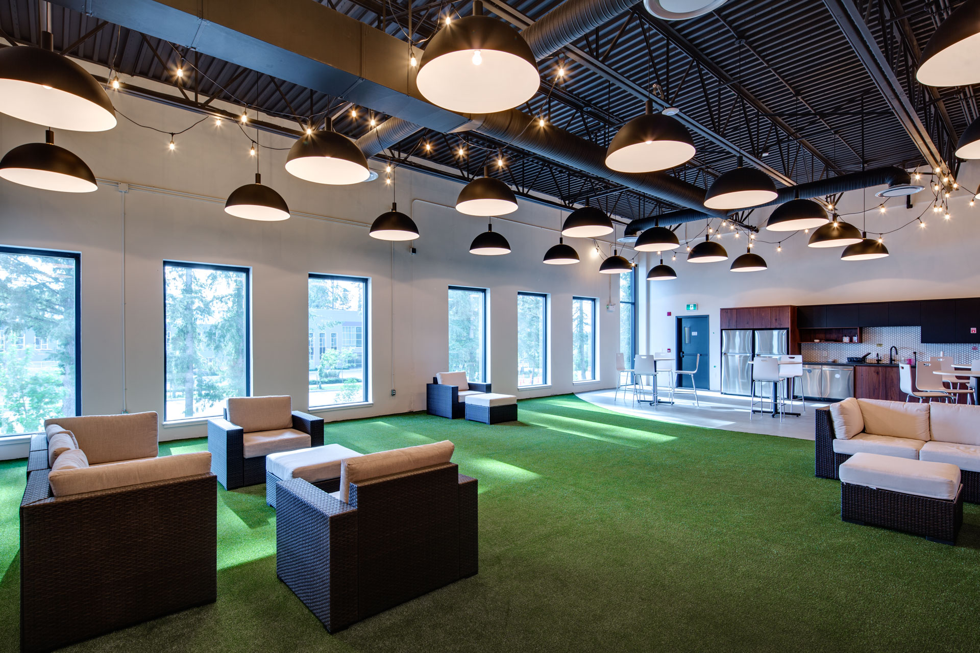 Outland Living has expanded its headquarters and distribution hub at Surrey's Campbell Heights Business Park. The Tenant Improvements project reflects Outland’s focus on outdoor recreation, featuring fire pits, tables, and a cabin-inspired design. The space includes a turf-floored open area, unique wall panelling, and detailed millwork. Prioritizing people and culture, the facility boasts an exceptional staff and games room, while the second-floor lunchroom is designed for large gatherings.