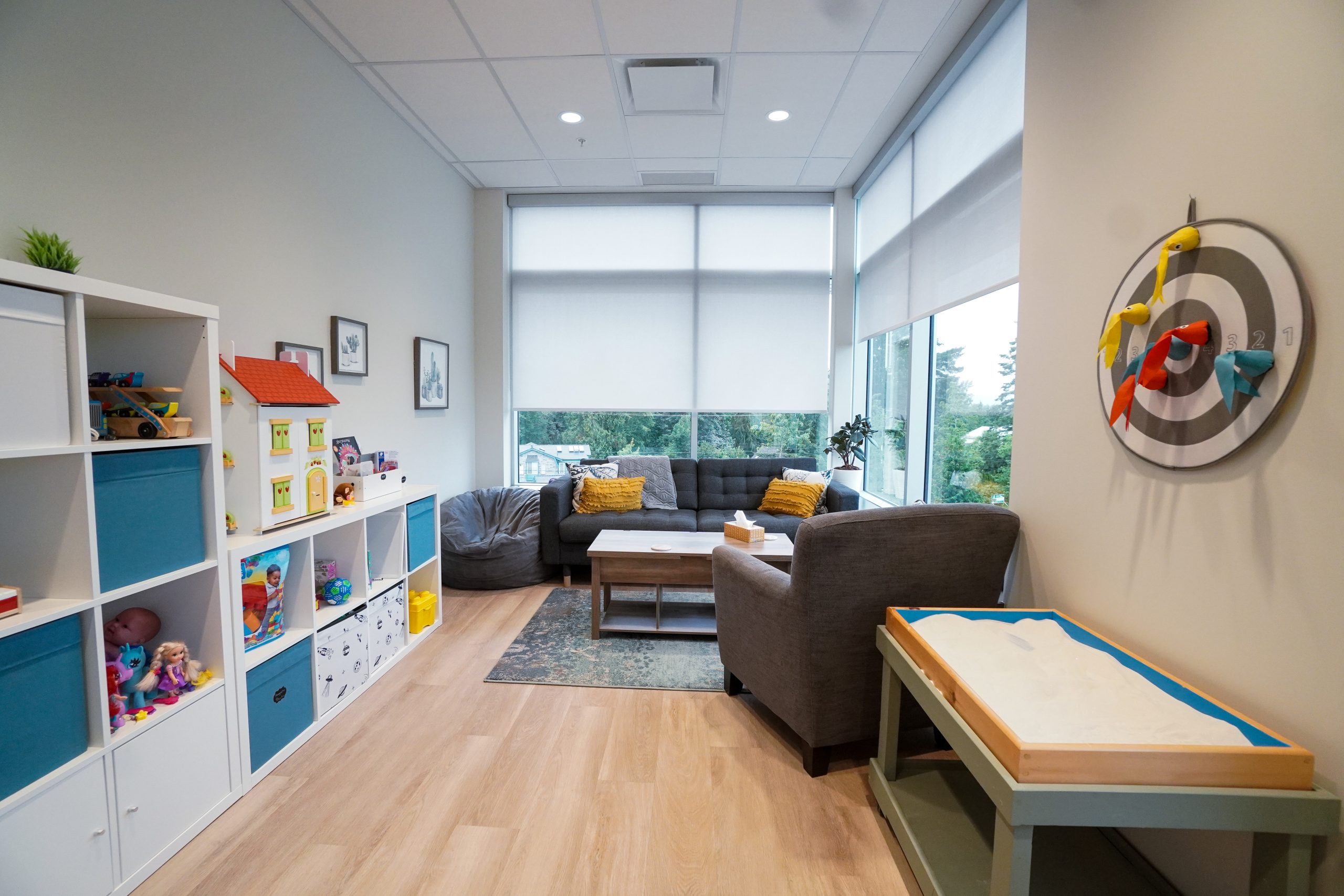 ThriveLife Counselling & Wellness, a collective of skilled clinicians, has a new home in Langley, off 199 Street. The space includes multiple treatment rooms, specialized playrooms for families, a welcoming waiting area, a kitchen, and a yoga room. This thoughtfully designed facility supports the clinic’s mission of fostering growth and wellness within the community.